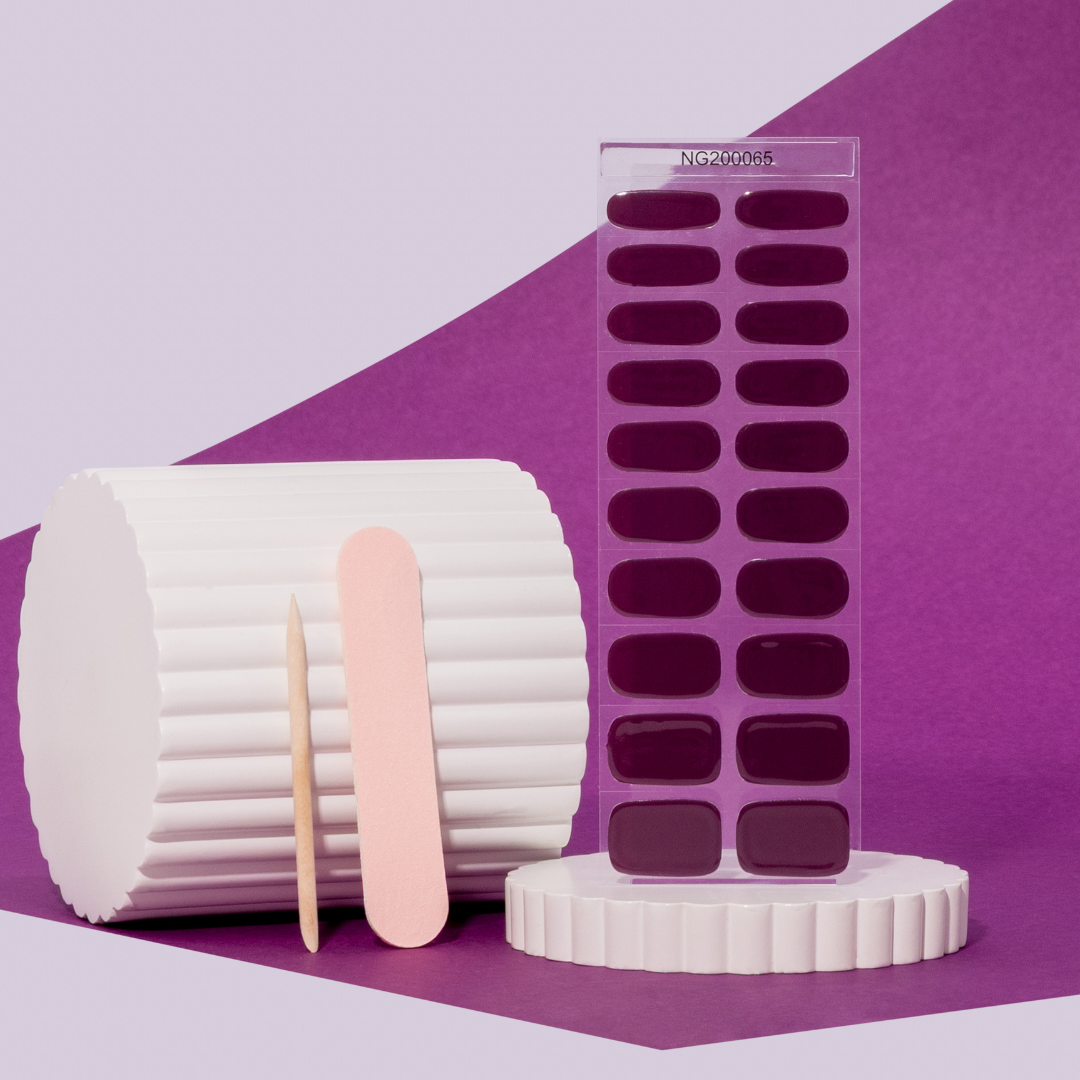Presentamos la pegatina de gel semicurado Mauve Merlot, una joya de nuestra colección de invierno. Este exquisito tono malva púrpura añade un toque sofisticado a tu manicura. Realza el estilo de tus uñas con este cautivador tono de nuestra Colección Sólida .